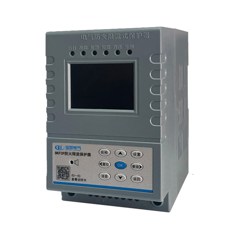 BKFCP系列电气防火限流式保护器,是一款能实时准确检测出用电回路的电流,并能以微秒级速度快速限制短路电流以实现灭弧保护,并集电压、电流、频率、温度(选配)、漏电(选配)等多种功能于一体,且具有智能化分析能力的新型用电安全监控装置。当被保护线路中发生短路故障时,电气防火限流式保护器能以微秒级速度快速限制短路电流以实现灭弧保护,在由短路产生的电流远未达到短路电流前就完成限流,从而预防电气线路短路过程中引起的连续拉弧打火等引燃可燃物造成的火灾事故,保障使用场所人员和财产的安全。